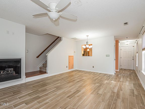 Cute and Cozy end-unit townhome w/ screen porch backed up to the Greenway and the Neuse River! One Car Garage and Dual Parking Drive. 2BR w/ 2 Private Baths and additional half bath on the Main Flr. Luxury ceramic tile floor on first and Laminate Flooring on 2nd Flr! Gas Logs in Family Room. Cathedral Ceiling in Master! Refrigerator, W/D and fridge in garage conveys! Incredible amentieis in the community: golf course, club house, 2 pools, cabana volleyball, fitness gym, yoga gym, free clases, indoor basketball court, fishing lake and Greenway trail. *** Possible Investment property!***