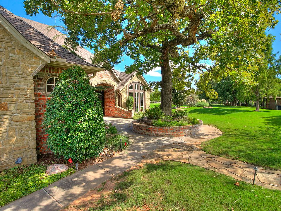 Welcome to the Bluffs at Pine Creek-custom built homes on acreage, established landscaping throughout. This home rests on 1.27 acres in a culdesac to make it even better. 3115 Sq FT, all on one level. 4 beds and 3.1 baths, private executive study w/ tall windows, beams & lots of light.From the moment you open the door, you'll love the open concept as you eyes travel to a fabulous babkyard with a water feature. You'll love the oversized master retreat w/large bath and master closet. Entertainers dream & fabulous kitchen, huge pantry. You can just feel the extra quality that was put into this home & fabulously maintained.Even the garage is pretty,epoxy floors & custom cabinets. Home is unique & one of a kind lot in Edmond with a huge Side yard that would be ideal for a pool & cabana, garden, play ground. Let your imagination start here.There's even a possible library or playroom right off the living room. 2019 Roof, generator serviced quarterly and AC $ Heat systems replace in 2018.