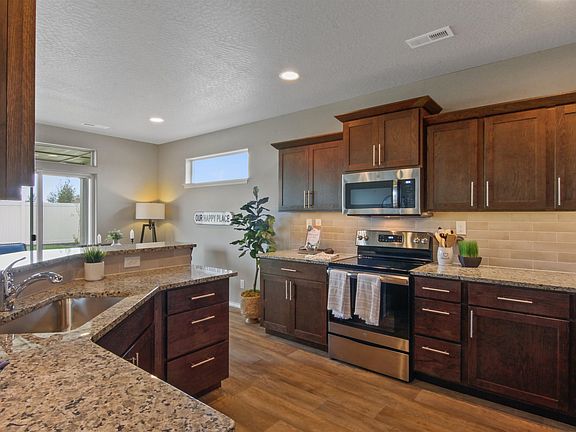 Welcome to this stunning single-story home, perfectly situated on a spacious corner lot. This residence features a 3-car garage and a beautifully landscaped, fully fenced backyard. Enjoy the outdoors on your covered back patio, ideal for relaxation or entertaining. Inside, this home boasts an open floor plan that seamlessly connects the living spaces. The heart of this home is the open kitchen, a paradise for any chef. It offers ample counter space, abundant cupboard storage, and a convenient breakfast bar. The kitchen flows into the expansive living room and adjoining dining area, creating a perfect space for both casual meals and formal gatherings. The private main suite is a retreat of its own, highlighting a dual vanity bathroom with an optional separate shower, and an enormous closet offering ample storage. Additionally, this home includes two more bedrooms and a second bathroom, ensuring comfortable living space for everyone.