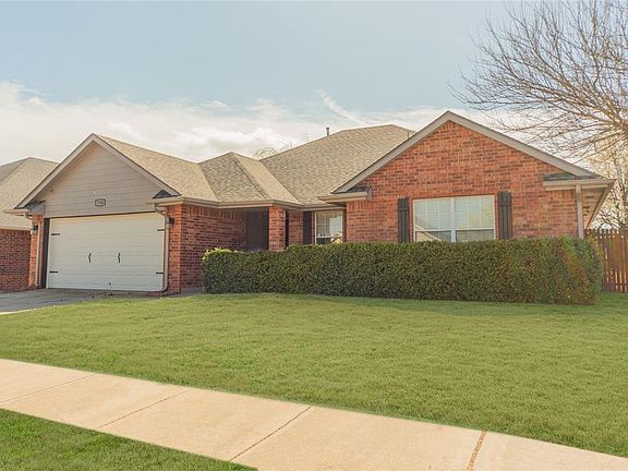 Seller offering a $3000 flooring allowace to buyers. Lovely Home with lots of Space in Great Location! Located only a minute from I-240 which gives quick access to Tinker AFB, Lake Stanley Draper, Shopping, Eats and More! This home features a welcoming tiled Entry, Large and Open Living Room, Large Windows for Natural Light, Gas Fireplace, SUPER BIG Kitchen with Pendant lighting, skylight, Granite counter-tops, Long Breakfast Bar (great for homework, hosting a party or having a snack!) Pantry, Center Island and lots of counter space! This Split plan is perfect for having your own space; the Primary bedroom is on the other side of the home and includes his & hers sinks in the bathroom, Massive Soaker Tub with tile surround (romantic candle-light, anyone?) walk-in tiled shower, private toilet and walk-in Closet! The 4th bedroom near the front door could be a study, yoga or playroom! The other 2 bedrooms have their own hallway and bathroom. The covered back porch is great for bbq's or sipping a cup of coffee and the small back yard is easy to manage and is surrounded by a tall 6ft wood privacy fence. A storm shelter is in the floor of the garage. The Ecobee thermostat system will be great in the summer! If you're looking to be away from the big city but still a part of it all, this is the home for you! Schedule your personal tour today!