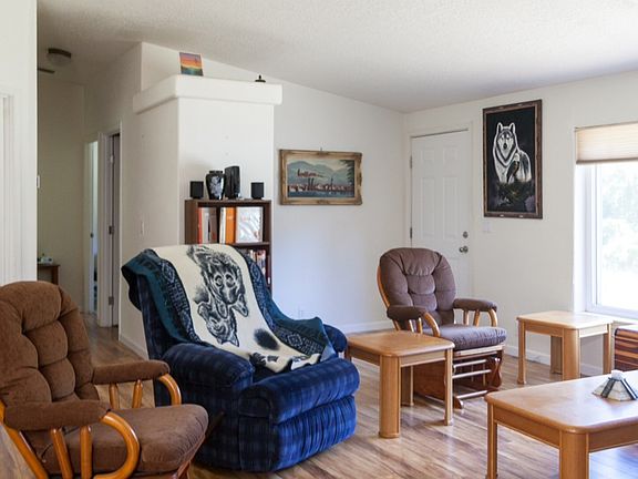 Over 2 acres of scenic land!2 separate fenced-in areas front & back. Like new 2004, 1560 sqft well maintained home. Includes master bed/bath w/soaking tub, plus 2 additional bdrms, large open office & open floor plan between kitchen, living rm & dining rm. Skylights bathes the kitchen w/bright light. Double pane Champion windows installed in 2012, all Hunter Douglas blinds & front loading LG washer/dryer included! Office includes cozy pellet stove. ADT alarm system & includes riding lawn mower!
