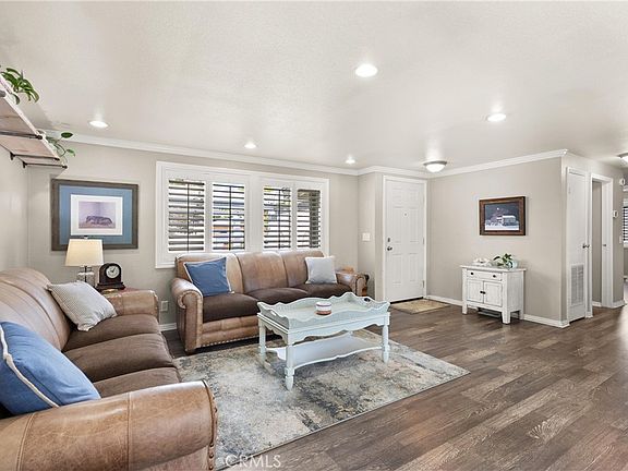 Welcome to 5708 Whitewater Street, a charming single-story gem nestled in the heart of Yorba Linda. With 2 bedrooms, 2 bathrooms, and 960 square feet of thoughtfully designed living space, this turnkey home offers a perfect blend of comfort, style, and functionality. From the moment you arrive, the beautifully landscaped front yard sets the tone—lush greenery, a blooming garden, and a welcoming pergola create a peaceful retreat before you even step inside. Once you enter, you'll be greeted by a bright and open floor plan that effortlessly connects the kitchen and living room, making the home feel airy and inviting. The kitchen features granite countertops, stainless steel appliances, and elegant crown molding, all of which carry through into the cozy living area—ideal for both everyday living and entertaining. Vinyl flooring runs throughout the home, offering both durability and style, while double-pane windows and plantation shutters ensure energy efficiency and privacy. The primary suite is a relaxing retreat, complete with a spacious closet and a private ensuite bathroom featuring dual sinks. The second bedroom and guest bath offer flexibility for visitors, a home office, or whatever suits your lifestyle. Tucked discreetly behind accordion doors, the in-home laundry area is both convenient and functional, with overhead cabinets for easy-access storage. Step outside to discover your own private backyard sanctuary—a stunning wooden deck and pergola provide the perfect setting for relaxing or dining al fresco. The tall wooden fence adds a sense of seclusion, making the outdoor space feel like your own personal escape. Located in a desirable Yorba Linda community, this home offers the perfect mix of charm, modern convenience, and low-maintenance living. Enjoy local shopping, dining and great local parks along with top schools Travis Ranch Elementary-Middle School and Yorba Linda High School. Whether you're starting out, downsizing, or simply looking for a peaceful place to call home, 5708 Whitewater Street invites you to settle in and enjoy.