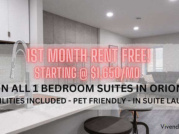 1st Month Rent Free on 1 Bedroom Suites! Orion at Lumino Park! Central Location Close to Chinook Mall & Downtown!Orion offers modern suites in an amazing central location close to shopping, Chinook Mall, transit & downtown plus upscale features & amenities such as:Utilities IncludedShared Wi-FiPet Friendly - Cats & dogs are welcome with approval & a one time pet fee (Restrictions apply)In-Suite LaundryHigh Efficiency AppliancesCloud 18 Lounge - Top floor amenity space open to all residents but can also be booked for private functions! Featuring full kitchen, bathrooms & stunning, panoramic downtown views on the north side & mountain views on the south & west!GymUnderground & Outside Lot Parking *additional fees apply upon availability*Bicycle StorageOutdoor CourtyardOn Site Professional Management & MaintenanceHeatWaterElectricitySewageGarbage CollectionInternetLocation & Community DetailsNestled in the vibrant neighborhood of Manchester in Calgary, Alberta, this area boasts a perfect blend of urban convenience and suburban tranquility. Public transit is a breeze with the nearby Chinook CTrain Station & just a 10-minute drive away to downtown Calgary for work or play. The bustling Chinook Mall is also within walking distance, offering a plethora of shopping, dining, and entertainment options for residents to enjoy. Orion is a haven for families and professionals alike, with top-rated elementary schools and daycares in the vicinity. Health care needs are easily met with hospitals and pharmacies a short drive away. For fitness enthusiasts, there are various fitness centers and parks with scenic trails for outdoor activities, making it a healthy and active community. The neighborhood exudes a cozy and inviting atmosphere. With its proximity to major roads like Glenmore Trail and McLeod Trail, as well as the vibrant downtown core, this neighborhood offers a blend of convenience and serenity, making it a desirable location for a diverse range of residents.