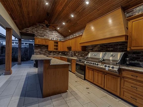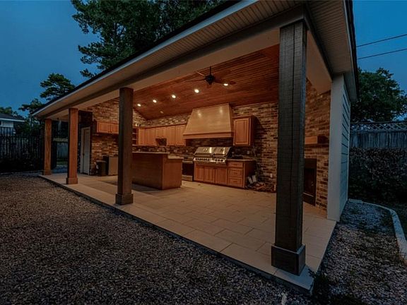 - Exterior features: Fence, Outdoor Kitchen, Porch