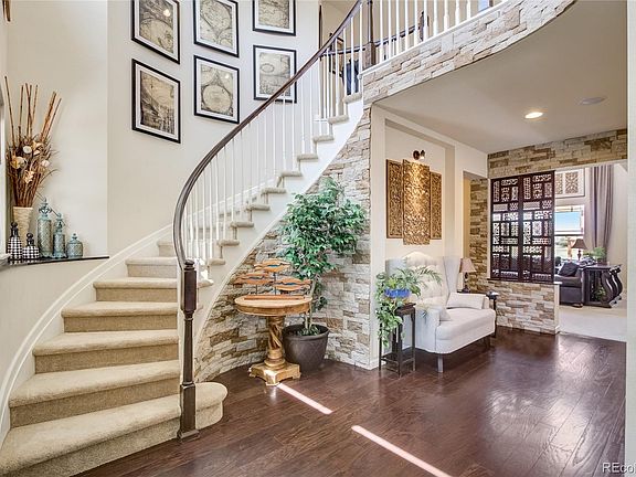 Get ready to fall in love with this upgraded Kechter Crossing two-story home! Perched on a large landscaped lot that overlooks verdant open space, this Craftsman-inspired home greets you an idyllic covered front porch. As you step inside, rich hardwood flooring welcomes in a stylish, open-concept interior enhanced vaulted ceilings, stacked stone accents and eclectic finishes. A dream for those who love to entertain, the well-appointed kitchen showcases stylish espresso cabinetry, granite countertops, stainless steel appliances and a large center that invites guests to gather and mingle. Abundant sunlight fills the adjoining living room that boasts a double-height ceiling and gas fireplace with stacked stone surround. Upstairs, the private master suite delights with a spacious walk-in closet and a 5-piece ensuite bathroom. Three generously-sized bedrooms, two full bathrooms and a laundry room complete the functional second-level floor plan. The finished basement is sure to impress with a theater room with wet bar, a playroom, home gym, conforming bedroom and upgraded bathroom. Discover an outdoor paradise in the spacious backyard! This landscaped retreat features a cedar pergola, professionally-designed concrete patio, a koi pond with water feature, an outdoor kitchen and a sandbox. Recently completed upgrades include a whole-house speaker system and smart home system. This move-in ready home is located in a prime Fort Collins location, offering easy access to Costco, Walmart, Target, Sprouts, Twin Silo Park, plus Urban Air Trampoline and Adventure Park.