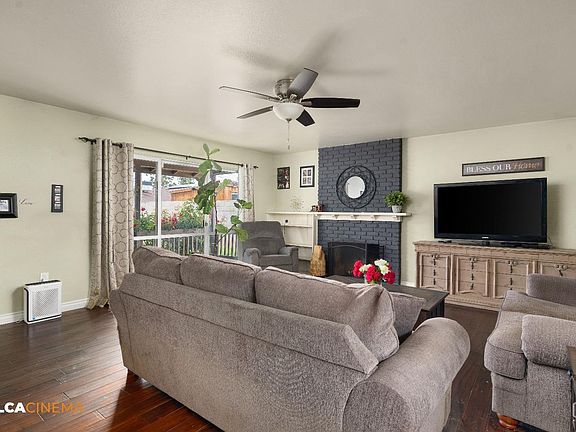 Welcome to this charming split-wing home boasting 3 bedrooms and 2 bathrooms within 1,567 sq ft of living space. Recent upgrades include a new roof plus an oversized solar system that covers your entire electric bill! Newer windows, and an updated bathroom. The home features two living room areas, offering ample space for relaxation and entertainment. The main living room showcases wood flooring and a cozy brick fireplace, while the second living area provides additional versatility. In the kitchen, you'll find matching appliances, a convenient breakfast bar, and built-in shelving for extra storage. Step outside to enjoy a cozy covered patio and beautifully landscaped front and back yards, perfect for outdoor relaxation and entertaining. Don't forget to take the virtual tour and schedule your private showing today!