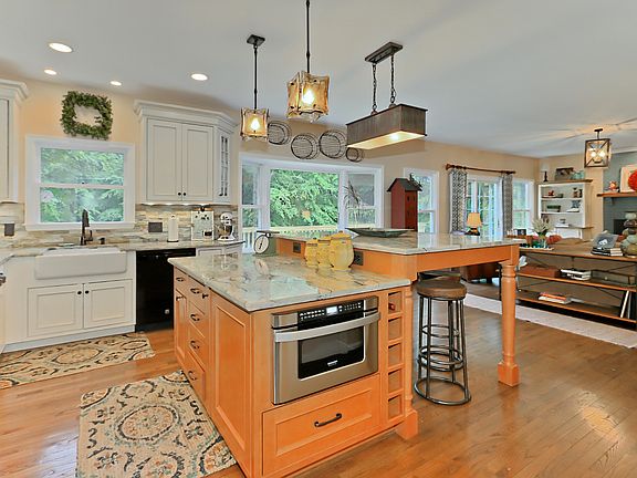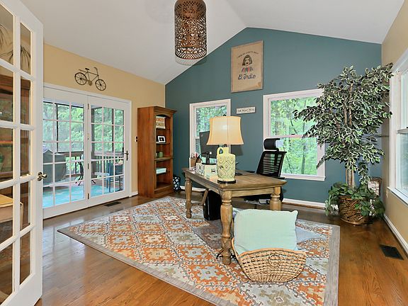 SMASHING "OASIS" -Almost 5 ACRES of wooded privacy in sought-after location!!GLEAMING hardwood floors, Fresh paint, BEAUTIFUL half BA renovation, SPECTACULAR gourmet kitchen renovation, w/high-end stainless appliances, granite counters w/HUGE center island, high-end cabinetry & gorgeous tile backsplash!!NEW ROOF & DECK!!Escape from stress & relax in your POOL or HOT TUB in wooded wonderland- WOW!!