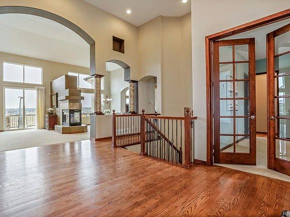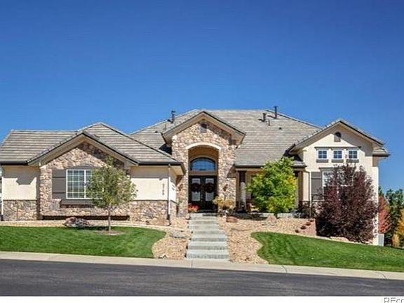 This is the luxurious CO lifestyle you want to call your own. Perched in the hills of the Vistancia Gated Community, adj the Pradera Golf Club, 6,886 sqft is designed as an expansive ranch home w a finished basement. The professionally landscaped backyard & large trex deck will take your breath away. Foyer enters the grand room exposing its dbl-sided fireplace, big windows & the sweeping distant views to match its street name. Main flr master inc. fireplace, back deck access, 5pc bath & oversized closet. Expansive kitchen w open concept,stainless steel appliances, lg island w gas range, dbl oven, prep sink, & full pantry space. Tour the rest of the main floor amenities-Study w built-in bookcases, sitting room, guest room w/ full ensuite & lg laundry room w utility sink. The garage provides ample space for 4 lg vehicles. Basement has no shortage of storage space w over 3,000 sq ft. including family room, 3 additional bedrooms, 2 baths, custom built wet bar for entertaining.