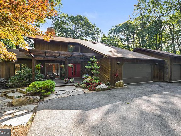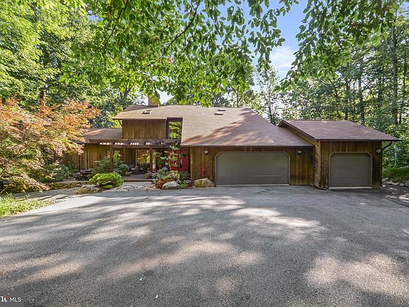 Welcome home to this contemporary 8.7 acre oasis nestled in the woods, where you and yours can enjoy the peace and tranquility of this lovely property. Be it a search for solitude or the desire for a little extra space that strikes your interest, this home is sure to please. The interior of the home boasts 5 bedrooms, 4 and 1/2 baths, and just over 5,700 square feet of finished space. From the moment you turn into the property, following the tree-lined drive, passing by the stocked pond, and crossing the bridge over the babbling brook, feel the world get left behind. Welcome to the most unique property youll visit this year - where the outside is let in, and the inside is let you. From the outdoor social spaces and water feature to the modern, gourmet kitchen, exposed brick, and master ensuite you must see to believe - youll immediately fall in love. Step inside the double door entry into a light-filled foyer with gleaming hardwoods abound; where a private study overlooks nature, flanked by a powder bath, and huge main level laundry with its own exterior door. A gourmet kitchen with Fantasy Brown exotic granite, maple cabinets, and Kitchen Aid commercial gas range and appliances, you'll want to entertain in your new home, or perhaps keep the secret all to yourself. Enjoy floor to ceiling windows two stories tall, creating an open and inviting environment with vaulted ceilings. The kitchen opens to a spacious family room, full of light, with slate and stone gas fireplace offering forth the perfect warmth for chilly days. A separate dining room with an additional two story wood-burning fireplace, and space to enjoy the views out multiple doors and near endless windows fill your gaze. Prepare yourself for relaxation and spa-level treatment as you enter the master en-suite on the main level. Well-appointed with a shower that you won't want to miss, picturesque views out your bedroom window, and two spacious walk-in closets. Upstairs you'll find 2 spacious bedrooms that are upgraded with private bathrooms and walk-in closets, with walk-out to wrap around deck, youre never too far from nature in this home. The lower level features additional living space and a wood-stove. A huge living space with private bathroom makes the perfect 5th bedroom, au-pair suite, in-law suite, and/or craft room. Don't miss the large climate controlled workshop space off the lower level deck, as well as numerous vignettes to socialize or find your own privacy, including but certainly not limited to, the custom built-in hot tub. Restored stone well house is currently used for storage. Minutes from Downtown Frederick with sought after and rarely if ever equalled level of privacy complete with roundabout driveway and additional parking. Three car garage with custom epoxy-sealed floor. New well in 2014. Please don't drive back driveway without a scheduled appointment.