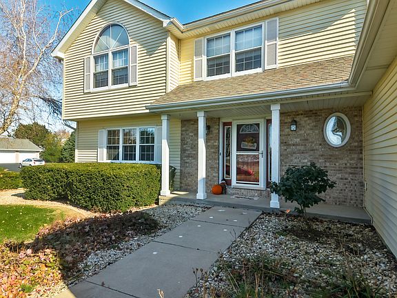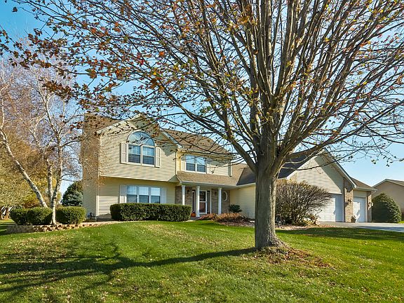 Pristine 2 story custom built. 4 bedroom, 2.5 bath, 3 car garage and 2x6 walls. Located on appealing corner lot with many trees and gorgeous landscaping. Basketball court, nice front porch and patio. Entryway features double closet and beautiful oak stairway. Immaculate living room leads to formal dining area. Kitchen features stainless appliances, hardwood flooring, breakfast bar and table area. Bay door overlooks paver patio. Abundant great room with vaulted ceiling and cozy gas fireplace. Primary Bedroom with full bath and walk in closet. Many updates include newer furnace and AC in 2019, paint and some new windows. Prime location in country subdivision close to shopping and interstate roads. Only 15 minutes away from Southeast Rockford. Don't miss this excellent home. Move in ready! Extra 730 finished sq ft in basement.