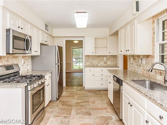 REGENCY AT IT'S BEST!! Expect to be impressed! This lovely home shows pride of ownership throughout and will charm everyone who enters! Ideal move-in condition & will sell quickly! * Entrance foyer leads to generous living & dining room space with multi-purpose options - Family room has fireplace with gas log insert & an entire wall of built-in cabinets & bookcase shelves - Hardwood flooring enhances these areas as well as staircase and upstairs landing. * Stunning renovated kitchen will inspire the family chef - Granite counters & appliances are warranted through March, '22 - Quaint light & bright bay window eating area has full view of backyard - Tile flooring throughout these areas + tile in 1/2 bath, large utility room and "surprise" multi-purpose bonus room. * All bedrooms located upstairs - Master bathroom shower area has been renovated. * Fenced backyard features large custom designed "Marine grade lumber" Pergola patio - Ideal for entertaining family & friends year-round. Beautiful landscaping with 15 Ligustrum shrubs across the back fence line + a wall of gorgeous pink blossom camellias & a fig tree. * 22' x 27' garage with workbench, tool pegboard & space deep enough for large vehicle + additional large concrete parking pad in backyard area. * Approximately $72,000 has been spent on overall renovations & updating. All info is documented in an impressive bound notebook and available for prospective buyers to review at a showing of this great property. REGENCY is and always has been a premier West Mobile neighborhood - Convenient to schools, grocery stores, churches, hospitals, restaurants, banking, parks and The West Regional Library, University of South Alabama, and so much more! Vacant and easy to show! Quick easy closing possible. All updates per the seller. listing company makes no representation as to accuracy of square footage; buyer to verify.