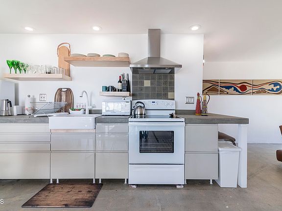 This secluded mid-century cabin is on 2.5 acres. More than one acre encircling the house is fenced for total privacy and fantastic for dogs. The raw land to the west is the other half of the property. It's being sold mostly furnished with some amazing pieces but some noted exclusions. There's a two car garage, solar panels, a spa, tankless water heater, irrigation, car charger, cowboy tub and an outdoor shower. A stylish little getaway with a lot of personality.