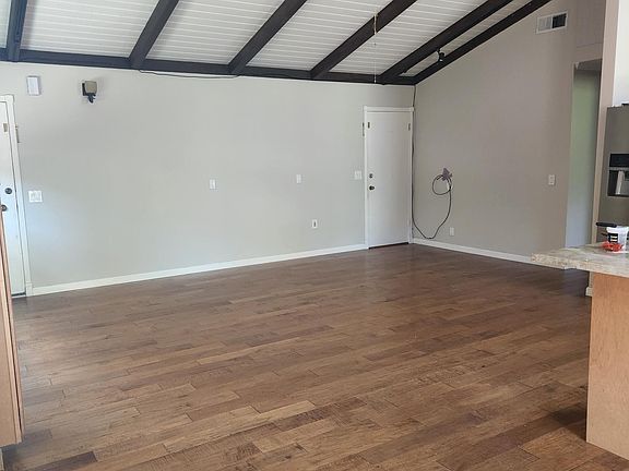 Freshly painted single story duplex with vaulted ceilings and skylights in living room. Hardwood floors in main living area. Bedrooms carpeted. Remodeled kitchen with stainless appliances and granite counters. Slider leads to deck and private yard. One space in garage. Washer & dryer included. Gardener maintains yard. Tenants pay water, PG&E and trash. Owner pays gardener. Some dog breeds may be excluded.