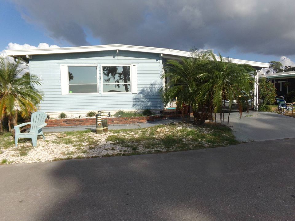 A full and unrestricted view of the Manatee River is a feature of this 1976 double wide. The home has been 100 percent renovated with new sub flooring, laminate and tile flooring; new ceilings and new recessed lighting. An updated kitchen has a pantry, new counter tops, new back splash, newer stainless steel appliances and has an amazing 16 kitchen drawers. A large island has cabinets in addition to cabinets along the back wall. There are stools for seating along the whole island. The kitchen area flows directly into the dining area, allowing for an open living concept. A step brings one into a main living area with windows looking directly at the river. Off the kitchen area is a large opening also providing a view of the water. A master suite has a walk-in closet and an en-suite with a new vanity, sink, commode and walk-in shower. The guest bedroom does not have a closet, however, there is a closet directly across the hall. Also across the hall is the guest bathroom that has been updated as well. The entire interior of the home has been freshly painted. A screened lanai at the back of the carport can be fully opened across the front allowing for golf cart parking. In the lanai is a storage shed that houses the washer/dryer, hot water tank and provides ample storage. Rounding out this home is a sealed metal roof, a serviced central A/C unit with a new capacitor, and very tasteful furniture. Although the square footage is 1200, the main living area is also under A/C and makes the total cooled space measure 1500 square feet. This updated home is a beauty. Located in the age qualified community of Colony Cove. The home is situated close to the picnic pavilion and fishing pier, the gym and community garden and within walking distance to a pool and recreation hall.