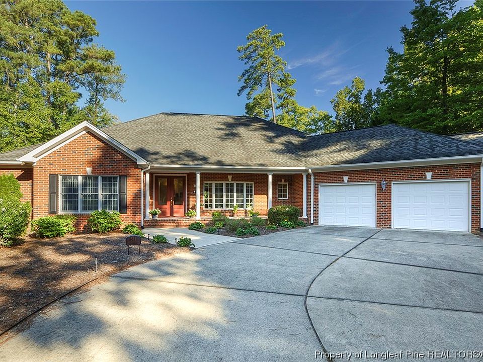 Stunning all brick custom home located in Carolina Trace! This beauty is located on the #13th hole of the Creek Couse which offers stunning views, tons on entertaining areas inside & out! Greeted by lovely curb appeal & 8' foot double front doors. Once inside the home you will say WOW. Large living space, formal dining area, & huge kitchen. Brand new double ovens, gas cooktop, tons of cabinets that included a 'pop-up" cabinet for your kitchen-aid mixer, & solid surface counter tops! Master bedroom is spacious offering a walk-in closet that's AMAZING! Separate double sinks, soaking tub, tile shower, & heated floor. 2 additional bedrooms, full bath, & half bath on main floor. Basement is fully heated & cooled w/ an additional bedroom, full bathroom w/ heated floors, living room/game room, full workshop & tons of storage. 2 tankless water heaters, crown molding throughout, tray ceilings, 11' ceiling in living/dining area, screened in porch, TREX deck, Beam central vacuum system.