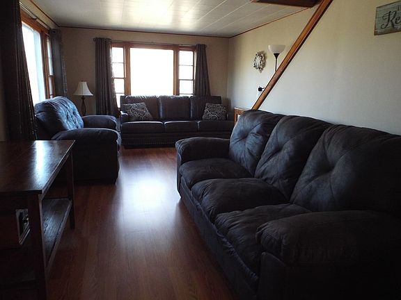 Nicely remodeled home on 8 acres with 2 bedrooms, 1 full bath, eat in kitchen open to large living room. Attic space could be finished for extra bedroom & bath. Full basement also has finishing potential. 2 garages, new septic system.