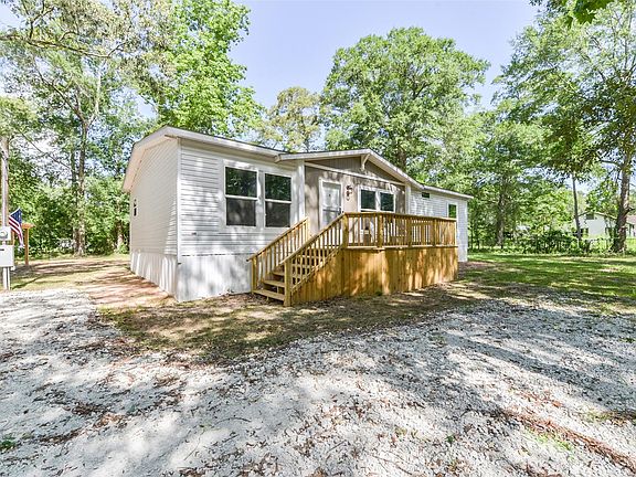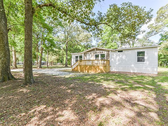 Charming "farmhouse" style home located on over 1/2 acre and fully fenced. Beautiful trees are all over the property and provide plenty of shade while outdoors. You have a nice large porch to sit out on and enjoy the peace that surrounds this home. As you step in this brand new home, you are immediately greeted by a faux beam and warm shades of vinyl plank flooring in the spacious living room. The island kitchen is the showstopper of this home with a white island & dark cabinets, shiplap type accent walls, refrigerator included, stainless steel farmhouse sink and a barn door separating the kitchen from the utility/mud room. The split plan includes 3 spacious bedrooms w/2 bathrooms. The primary owners retreat features a large walk in closet, en suite bathroom with a nice sized shower & dual sinks. If you head back outside, take a peak into the she-shed and see how you can use this as another bedroom/bathroom guest quarters! 181 Coker Loop next door is for sale as well MLS#: 25461254
