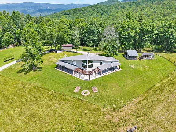 Check out this absolute showstopper on top of Pilot Mountain!! This unique and architecturally stunning home combines rich comfort with peaceful country living. The kitchen features granite countertops, rich wood cabinetry, stainless steel appliances, and a subway tile backsplash. The spacious first-floor primary suite includes dual vanities, a freestanding soaking tub, a custom shower with two shower heads, and a huge closet. Open living spaces are filled with natural light pouring through large windows with high end finishes throughout including a masonry wood-burning fireplace. An outdoor wood furnace keeps energy bills low, offering an energy-efficient solution for year-round comfort and a full-house Generac generator provides coverage for any unanticipated weather. Enjoy serene mountain views, a large yard ideal for gardening or recreation, and the quiet charm of rural life—all while being within a reasonable drive to town.
