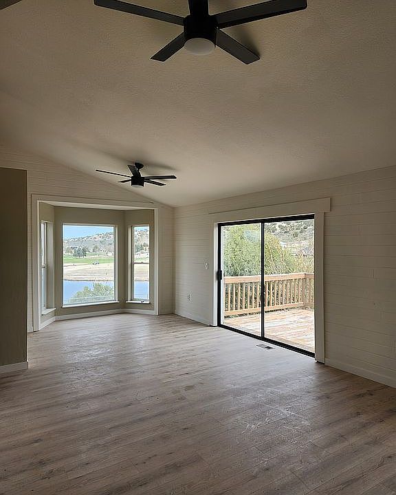 Beautiful views from this newly remodeled spacious 3 bedroom 2.5 bath home. This home is located in the Spring Creek association on an 1.5 acre lot. The home sits above the marina with great views of the Ruby mountains from the living room and master bedroom. The house has fresh paint and new flooring throughout. The kitchen is updated with new cabinets and granite countertops. All bathrooms have been remodeled with flooring, vanities, and tile shower/bath. Living room area has large deck with spectacular views. Full unfinished basement with an additional 1332 sq. feet of living area.