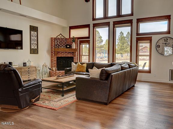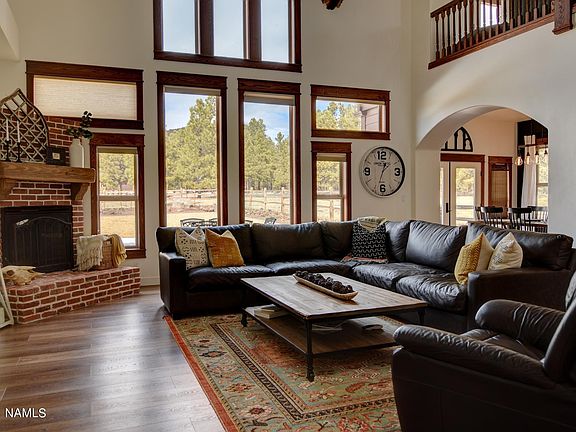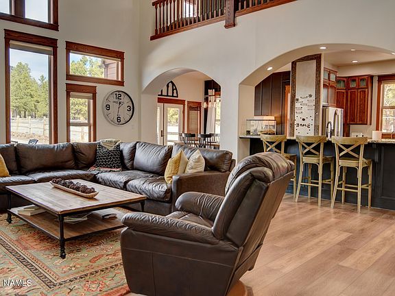 Amazing well appointed Lockett Ranches Home with San Francisco Peak Views, Ponderosa Pines, on over 5 acres of Northern Arizona land. Take in the Stunning Panoramic views of forest, Mount Elden and the Peaks in every direction from multiple decks, fire pit area, a huge porch and the landscaped back yard. This home has a lengthy list of energy efficient appointments including, high R-Factor urethane insulation, rooftop owner owned voltaic solar, central A/C and Tankless Water heaters. Inside the upgrades continue with waterproof vinyl plank flooring, new light fixtures, 20' ceilings, a gourmet kitchen with granite countertops, custom woodwork and large master suite. Come take a look at this magnificent property before its gone! Be sure to check out the Matterport Tour!