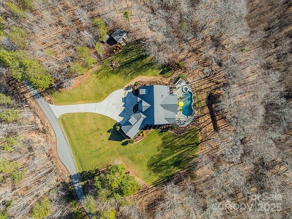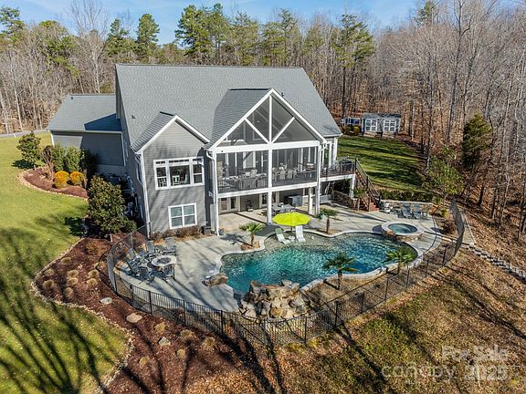 Welcome to this extraordinary, private gated estate, nestled on 5.6 acres of picturesque wooded land, offering many unique features designed for privacy, comfort, and grand entertaining. With nearly 5000 sqft of custom-designed living space, this exceptional home boasts a grand vaulted great room, featuring dual 10ft sliding glass doors that seamlessly connect to a spacious, vaulted screened-in porch. With 4 generously sized bedrooms, a 5th bonus/bedroom, and 4.5 luxurious bathrooms, the primary suite stands out, offering a large bathroom with a dual-head walk-in shower and an oversized walk-in closet, pre-wired for a sauna. Step outside and unwind by the resort-style pool with a hot tub and waterfall/grotto, entertain guests around the 5-swing fire pit near a serene creek, or relax on the screened porch by the gas fireplace—there’s so much to enjoy! This home represents a rare opportunity to own a slice of paradise! See linked virtual tour! Agent/owner. Shed/coop/sauna do not convey.