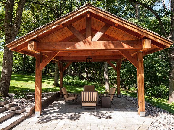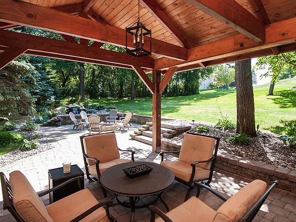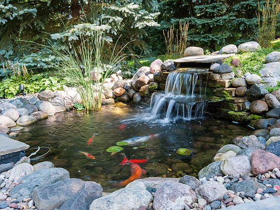 Spectacular walk-out 2 story on almost 4 very wooded acres but minutes from town! Updated throughout w/Granite tops, stainless steel appliances, hardwood floors, neutral carpet, 9 ft ceilings on main and 2 gas fireplaces. 3 car garage insulated & heated, additional pre-stressed garage makes 1632 total sq ft of garage space. Amazing yard w/ covered pavilion, burning pit, and waterfall w/ Koi pond.