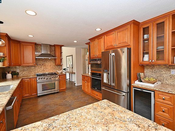 Upgraded Sycamore home in a fabulous neighborhood and conveniently located just a short stroll or bike ride to quaint and historic downtown Danville. Plus the highly rated schools makes Sycamore one of the most sought-after neighborhoods in the East Bay with mature trees, paved walking paths, clubhouses, tennis courts and playgrounds! This quiet and lovely 2728sf home perfectly situated on a 1/4 acre +/- flat lot offers 3 yr new dual AC system (3 ton unit upstairs/5 ton unit downstairs) solar for electrical savings, 3-car garage with separate dedicated heat/air and fancy painted floor! Primary suite offers an additional large bonus area for nursery, yoga or office, your choice! Granite counters and stainless steel kitchen appliances, including Electrolux 6-burner gas range, additional oven, and wine/soda fridge! Backyard is a true delight with sparkling pool, separate in-ground hot tub, pergola and built in BBQ kitchen area with mini fridge and granite countertops, plus a lush lawn area with plenty of room to entertain! OPEN SUNDAY 1-4pm