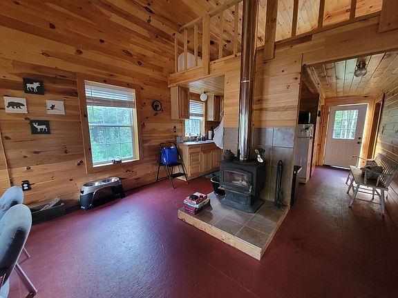 Come and experience the tranquility of the serene and secluded Maine forest! With no other cabins in your line of sight, you can unwind by Baker Pond as though you have the entire place to yourself, complete with a 1/4 acre of waterfront property. Enjoy activities such as kayaking, hunting, fishing, and ATV and snowmobiling adventures nearby. This exceptionally well-constructed 24X32 cabin is versatile enough to serve as a year-round residence. It boasts soaring 17-foot cathedral ceilings and a charming wood stove for comfort. A dug well and a grey water system are already in place, along with an insulated outhouse featuring a tiled floor. The cabin is equipped with propane lights, a gas stove, and refrigerator. Additionally, a generator is provided and configured to support solar power, complete with an already installed breaker panel. Ample storage is available with a spacious 40-foot shipping container and a shed included. Every item you see in the property is part of the package! Don't let this chance slip by to own your very own waterfront home.