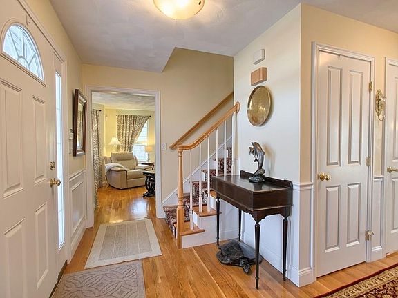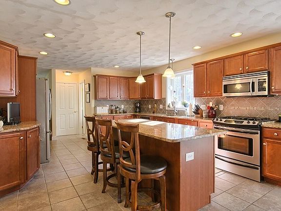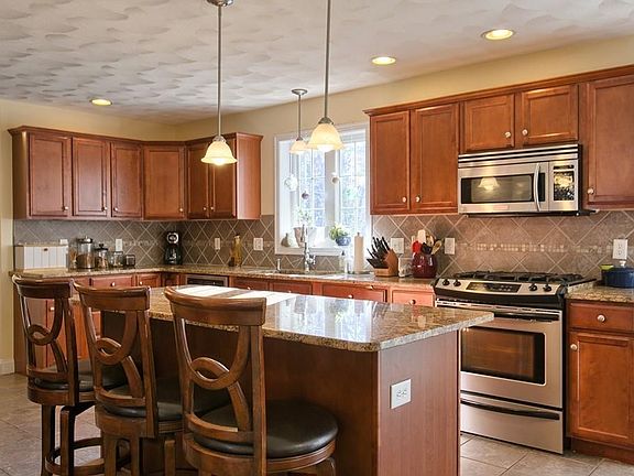 Wonderful Lake view, Lots of well thought out spaces in this lovely 5-bedroom colonial on a corner lot with perennial gardens and pretty plantings. Large spacious sunny rooms, Tiled eat in kitchen with granite counter tops, stainless steel appliances, center island and slider to back deck. Formal hwf dining room with lots of architectural detail including wainscoting & moldings, Bright foyer and open hardwood living room with electric fireplace (included) 1/2 bath: Second floor offers a large master bedroom with walk in closet and Tiled Master bath with double sinks and Jacuzzi tub. Three more bedrooms and full tiled bath finish off second floor. Walk up attic offers potential for future expansion. Lower level has walk out bonus room w/ kitchenette + full private bath w/ stand up shower & laundry, (washer and dryer are included) Would make a great teen suite or mother-in-law apartment. Video security system. Walk to town beach & playground! Location is ideal for commuters, just minutes to highway and Burlington Line!
