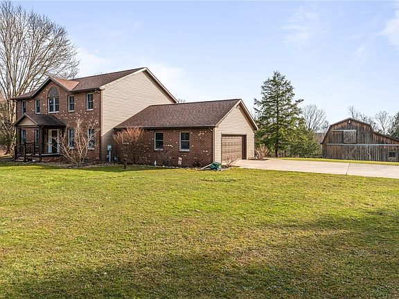 Private country farmette on 18+ Acres in Franklin at the end of one of Franklin's most desirable roads,this 4-BR,3.5 BA home offers 3,000+ sq/ft.Open concept w/ huge rooms,2 story entry foyer.Main floor laundry,chef's kitchen w/ ceramic tile floor,2 ovens & plenty of countertops & cabinets.Dining area & living room both w/ access to 45ft long deck w/ pergula overlooking the private bakyard,den/office,& 1/2 bath.Upstairs has 4 BR's,master bath w/ garden tub & walk-in shower,& full guest bath.Lower level game room,workout room,& storage room,3/4 bath,& walk-out basement leading to an above-ground pool.2-car garage.Equestrians,farmers,& hunters this property features a 2-story 37x40 barn,outdoor riding arena,33x60 outbuilding,food plots,& wooded trails. Enjoy unmatched privacy while being just minutes to Franklin Area HS&Sandycreek Elem,& downtown.1+ hr to Pittsburgh.This incredible property offers space,seclusion,& modern amenities—don’t miss your chance at this one-of-a-kind retreat!