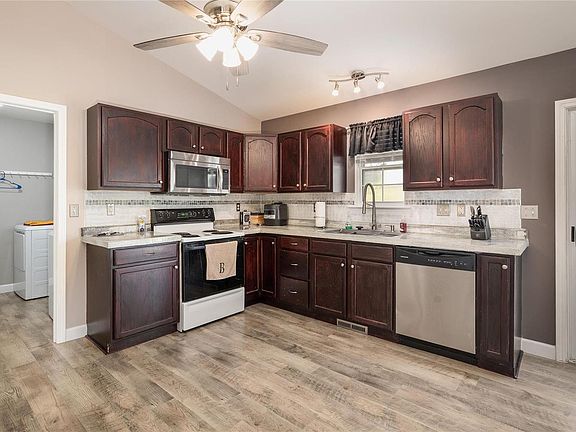 Come see this must see home in the heart of Washington! This home has so much to offer with it's main floor laminate flooring, wide open floor plan, concrete counter tops, main floor laundry, nice sized concrete patio slab, fenced in yard and a shed for storage! This home has 2 bedrooms, main floor bathroom and primary bedroom suite! This beautiful home has a nice sized kitchen, oversized 2 car garage and finished basement with a roughed in bath ready for you to put your own touch on it! It is prime location, close to highways, shopping, and schools! Move in ready! Schedule your showing today!