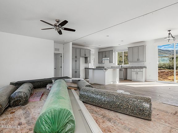 Loan incentives with builder's preferred lenders! Brand new construction (4 bdrm 2 bath) with absolutely gorgeous & secluded views on 4 acres! Upon completion/backfill the home will be set at ground level with large front & rear concrete patios. Extensive upgrades include 9' high flat ceilings, huge 80'' tall windows, oversized sliding glass door & high transom windows for a ton of natural light & 2'' faux wood blinds. Solid wood cabinets, farmhouse sink, and upgraded stainless steel appliances. Huge walk-in tile shower/spa & separate soaking tub. Backlit mirrors, upgraded black hardware decor package, flooring, trim, lighting with seeded glass and ceiling fans. 2x6 construction with upgraded insulation & architectural shingles. Full 1 year manufacturer's warranty included & much more!