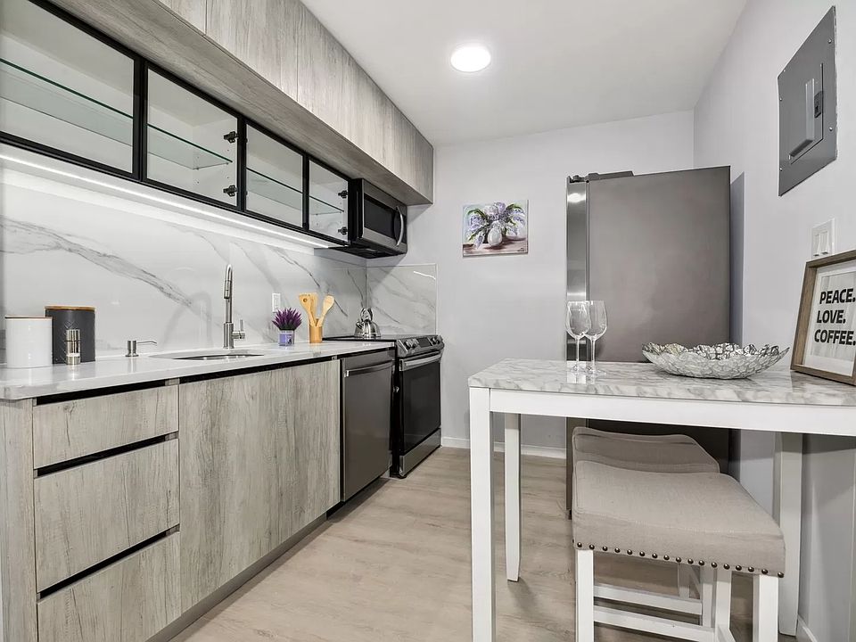 OPEN HOUSE BY APPOINTMENT. MUST INQUIRE TO SCHEDULE A TIME TO COME IN. Welcome to 571 ocean parkway, a striking new development project that is home to newest luxurious residences. This condominium offers modern and refined living and features an amenity package with private indoor and shared outdoor spaces. Located in Kensington, south of prospect park; 571 ocean parkway is in the center of Brooklyn and minutes from Brooklyn's most attractive parks, entertainment venues, restaurants, lounges, cafes, stores, and more. Unit 2A at 571 Ocean Parkway is an inviting 1-Bedroom 1-Bathroom with its own private outdoor space. As you enter this home you are welcomed by a large entry foyer lined with closets. Further in you have a galley kitchen leading into an expansive dining/living space which is flooded with natural light from the west facing exposure. These magnificent homes possess an array of high-end finishes and were designed to maximize space, light and convenience. Each unit offers private outdoor space, radiant heated floors throughout, European doors, and oversized triple-pane windows with tilt and turn technology. Additionally, these homes have smart entry door locks, butterfly mx intercom system, central cooling, and in unit laundry closet. Each layout has impressively large entry foyers and generous amount of closet space. Kitchens are outfitted with quartz Calacatta design countertops with matching backslash that is illuminated with under-cabinet LED lighting. The suite of Samsung stainless-steel appliances that seamlessly compliment the kitchen cabinetry includes: a refrigerator with water dispenser/ice maker, dishwasher, range, and vented microwave via exhaust. Added convenience of touch-controlled kitchen faucet and in counter soap dispenser in every kitchen. Elegant bathrooms feature Maax soak tubs, rain shower head, wall mounted dual flush toilets, vanities with storage, medicine cabinet light, and beautiful porcelain tiles throughout. The medicine cabinets have built-in led lighting and heated anti-fog mirrors. Distinguished amenities include: Pet spa Indoor bicycle storage Fitness center outfitted with state-of-the-art equipment Outdoor backyard deck Common roof deck with 360-degree views Situated on a tree lined block on Ocean Parkway, this condominium is conveniently located between F, Q, and B train lines and in close proximity to multiple local and express buses, you have easy access to Manhattan and to South Brooklyn. Your home at 571 Ocean Parkway is ready for you. Select Model units available on site by appointment only Contact us to schedule your visit for a private tour. All measurements are approximate. Images are renders that were virtually staged. Pictures Represent Various Layouts. The complete offering terms are in an offering plan available from the File No: CD 21-0295