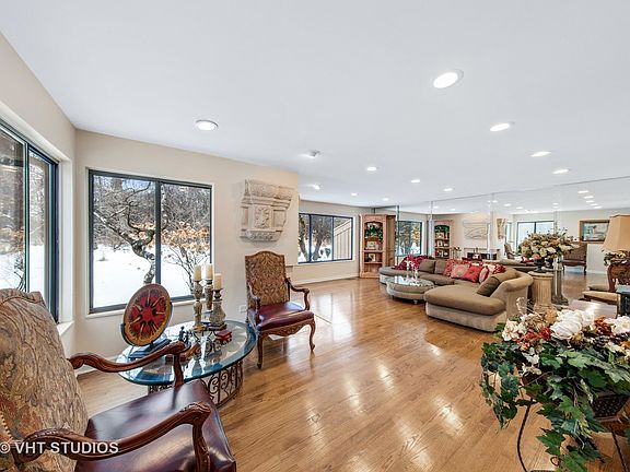 This home's legal address is "24571". This sun-drenched end unit backs to a private wooded setting and is updated beautifully. Enjoy nature and serene private views from your bluestone patio. Gleaming Hardwood floors grace the entire first floor. The Living Room with corner fireplace is so light, bright and elegant - there is an abundance of recessed lighting as well and the fireplace is perfectly positioned to enjoy while entertaining dining guests or relaxing in your cozy living space. An updated white Kitchen is a stunner with glass tiled backsplash, granite counters and a fully equipped stainless steel appliance package. There is also an eat-in area in the Kitchen. This layout has another wonderful den area off the Kitchen that is enhanced by sliders to the fenced in patio area. The original Windsor floorplan has this room as the 3rd bedroom. The extension off the Kitchen makes for an open and airy feel and is great for comfortable family time. 2nd floor is complete with a primary bedroom that views the woods, a full wall of organizer closets and a private bath that has been remodeled (shower never used yet!). The 2nd bedroom is sunny and has ample closet space and is right next to the 2nd full bathroom that boasts a tub and shower and custom designed artistic paint job (owner will repaint to neutral if buyer wishes). An added bonus is the fully finished Lower Level with 3rd bedroom with closet and another full bathroom. There is lots of space to spread out in the Recreation Room and there is a large walk in closet for storage as well. The 2 car garage is hard to find and this location is a short walk to the forest preserve trail entrance. Come see what Lake Barrington Shores has to offer: Gated and manned security entrance, indoor/outdoor pools, exercise facility/clubhouse/tennis courts/paddle tennis/pickleball courts/private lake and beach/paved walking path - all offering a lifestyle that is unmatched. A must see if you are looking to get into LBS!