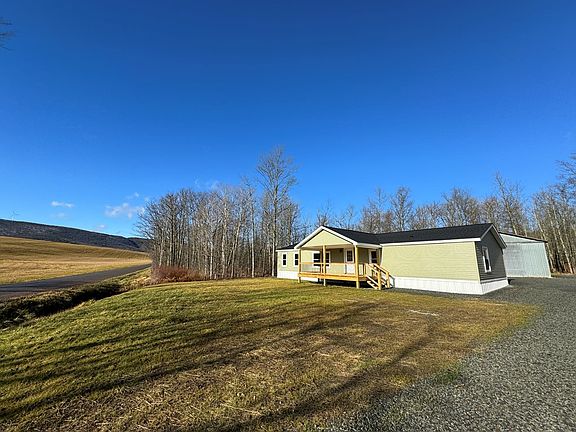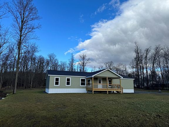 This fully remodeled ranch style residence is nestled on a sprawling 9-acre wooded lot, offering tranquility and stunning country views, just minutes away from town. The kitchen boasts elegance with its white cabinets, granite countertops, and modern stainless-steel appliances. Revel in the luxury laminate flooring that flows seamlessly throughout the home. The master bedroom is a retreat, featuring walk-in closets and a pristine ensuite with a walk-in shower and double vanities. Two additional bedrooms, a full bath, convenient first-floor laundry, and a powder room complete the layout. Step onto the expansive covered front porch to savor vistas of farm fields and mountains. The property includes 8 acres of woods for nature enthusiasts & those looking for privacy. A massive 2,400 sq ft pole barn for the mechanic. A great place to store a camper, ATVS, garden tractors & more. This move in ready, rural oasis in Troy, PA awaits!