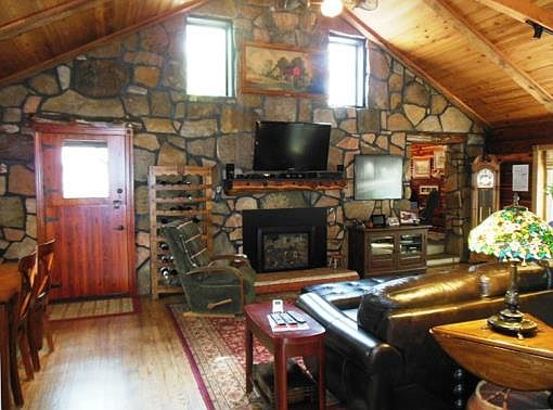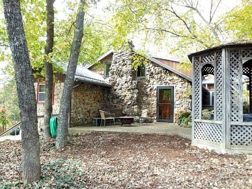 33 mostly wooded acres with a gorgeous Cedar Log and Native Stone Cabin, built on a bluff overlooking Bryant Creek. Great Room with open beam cathedral ceilings. Beautiful knotty alder wood kitchen and bathroom cabinets. One large bedroom, office and bath complete the main floor. 2 loft-style bedrooms upstairs. Hardwood, tile and carpet floors. Awesome 16x42 deck with automated retractable canopy. Fabulous views of Bryant Creek from the deck! Equally great views of Ozarks hills and fields from the covered front porch! More than a quarter mile of Bryant Creek frontage including trails along the bluff and frontage along the creek itself. Wet-weather creek with seasonal springs and beautiful bluffy terrain perfect for hiking and hunting. 3-4 acres of fenced pasture. Big 60x80 fenced garden spot. 3 bay machine shed. 26x28 gambrel roofed Garage/Shop with concrete floors, a rec room in the loft and an attached 14x26 storage lean-to. 7x11 chicken house, 8x9 greenhouse with water and electric. Wow!!