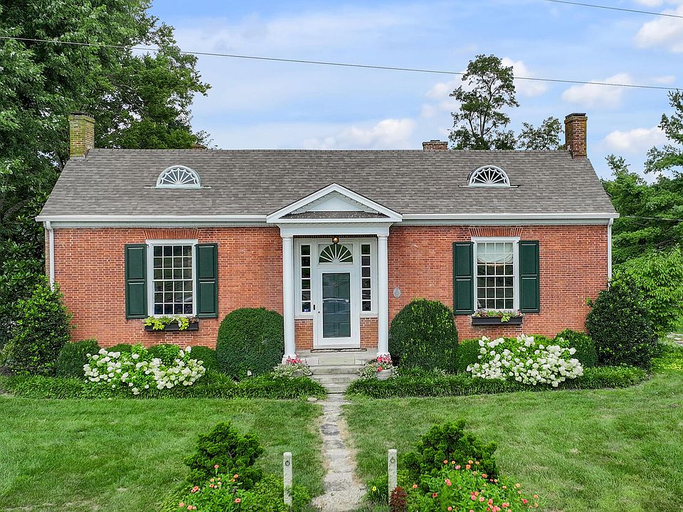 Welcome to Townsend Springs Farm—an iconic Bluegrass estate rooted in history and artfully refined for modern living. Originally settled in 1776, this Bourbon County landmark embodies the heart and soul of Kentucky horse country. The Federal-style residence, dating to 1803, features ash floors, hand-carved mantels, solid masonry walls, and Flemish bond brickwork. Soaring 12' ceilings and light-filled rooms showcase a perfect blend of timeless architecture with sophisticated updates. A chef's kitchen with exposed brick, original hearth, and hand-hewn beams pairs with a functional, sunny butler's pantry. Formal parlor, elegant dining room, and library offer ideal spaces for modern living and entertaining. The primary suite includes a fireplace, spa-inspired bath with claw foot soaking tub, and private home office. 3 additional bedrooms that each feel like private retreats. A finished walk-out lower level adds additional living space. Two limestone patios, mature trees, and breathtaking sweeping views second to none. Horse facilities include a 7-stall barn with bathroom and heated tack room, seven paddocks, and riding arena—all just minutes from Lexington and the Kentucky Horse Park.