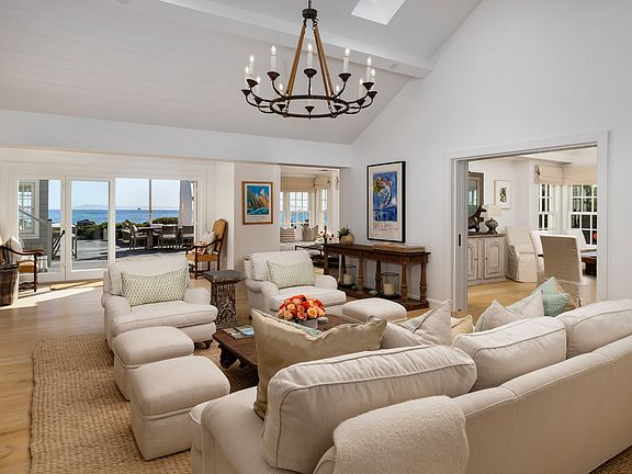 Along the serene shores of the Pacific, where ocean and sky stretch endlessly toward one another, a timeless Cape Cod-style estate embraces the essence of coastal living. Set on approximately 1.42± acres with an impressive ±133 feet of ocean frontage within the prestigious gated Sand Point enclave near Montecito, this remarkable residence was thoughtfully designed by Paul Gray and represents a rare opportunity to experience the very best of seaside living. From the moment you arrive, it becomes clear that this is no ordinary beach property. The home's setting, adjacent to the protected Salt Marsh estuary, offers an element of privacy and tranquility seldom found along the coast. The natural estuary, alive with graceful birdlife, not only provides a captivating daily connection to nature but also serves as a natural buffer from train and freeway noise. This unique position makes the property one of the quietest and most serene on the coastline - a sanctuary where life unfolds in harmony with the landscape. Inside, the home is designed to celebrate its setting. Crisp white walls, classic millwork, and expansive multi-pane windows frame breathtaking views of the Pacific and the stunning Santa Ynez Mountains beyond. Sunrises and sunsets become part of the daily rhythm, painting the horizon in dramatic hues. A rooftop deck offers a front-row seat to this ever-changing spectacle, where ocean breezes and starlit nights create unforgettable moments. The living room, anchored by a soaring cathedral ceiling and a dramatic stone fireplace, offers a warm and inviting place to gather, while the kitchen blends timeless beauty with functionality, creating a space designed for connection and celebration. Walls of glass in the adjoining dining area open to the horizon, where the sights and sounds of the sea become the backdrop for every meal. The primary suite is a serene retreat, with a glowing fireplace, sweeping ocean views, and windows framing the ever-shifting colors of sea and sky. Each day begins and ends with nature's artistry unfolding just beyond the glass. Outdoor living is equally inspiring. The expansive wraparound deck and spa invite relaxation beside the waves, while a lap pool offers a peaceful vantage point to observe the birds and wildlife of the estuary, a daily reminder of the beauty and vitality that surrounds you. Every element of the landscape, from the Santa Ynez mountain range to the rhythmic tide, works in concert to create an atmosphere of calm and timeless elegance. This is more than a home. It is a lifestyle defined by beauty, privacy, and the natural world. With its rare location, sweeping mountain and ocean views, remarkable sense of peace, and connection to one of California's most enchanting coastal landscapes, this ocean front Sand Point estate is a truly exceptional offering a place where every sunrise and sunset feels like a work of art.