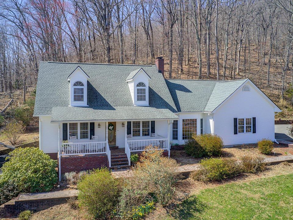 Get away from the city with this custom built, cape cod style home. Enjoy 6 acres with creek and STUNNING mountain views year round! Main level offers one level living. 3 bedroom home decorated as 4 (possibly 5) 3 full baths (one as Jack and Jill style)&1 half bath. Beautiful hardwoods throughout entry level and upper level. Primary bathroom completely updated with soaker tub. Main level kitchen has mountain views and dining area over looks the mountains. Lower level kitchen leads to second dining space, then onto the patio with more mountain views! 2 car attached garage, 3 car detached with kitchenette and storage, large quanson hut steel master garage with heat. Live off grid here with your solar electrical system; average electric bill was $115 in winter in summer only $15.