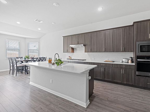Stunning two-story home that feels as good as new! Stylish finishes include high-end luxury vinyl plank flooring throughout the living, kitchen, dining, and bathroom areas. The impressive kitchen features an upgraded appliance package, gas cooktop, hood vent, contemporary light wood cabinetry, a large center island, and an expansive pantry. The spacious primary bedroom is privately situated on the first floor, with a well-appointed ensuite bathroom offering a separate tub and shower, quartz countertops, and a large walk-in closet. Upstairs, you'll find a massive Texas basement, perfect for an informal living space, media room, or play area. Enjoy a huge backyard complete with a stone retaining wall and wrought iron fencing, backing to a greenbelt buffer for added privacy. The rare three-car garage and oversized driveway provide ample parking and storage options. Built by Meritage Homes, this property includes spray foam insulation for superior energy efficiency. Located in the highly sought-after Dripping Springs ISD with a very low tax rate and close proximity to downtown Dripping Springs shopping, dining, and entertainment. For more info, go to: https://wkf.ms/3Y6zOHT