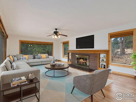 Great opportunity to purchase a one level home in Estes Park with huge potential! This home, built in 1951, has been updated through the years and sits on just over an acre of land. Enjoy stunning views of Longs Peak and Lake Estes from the oversized south facing windows in the living room, kitchen/dining room, and primary bedroom. The living room has large windows, hardwood floors, and a fireplace; the kitchen has plenty of room for a breakfast nook and a dining table; and the oversized primary bedroom has room for a quiet reading area or workspace. The second bedroom has access to the private fenced in yard and could easily be combined with the office to create a second primary suite. There is also room to expand the home and build a third bedroom off the breakfast nook. This home has been used as the Rectory house for Our Lady of the Mountains Catholic Church for over 50 years and has been lovingly cared for.