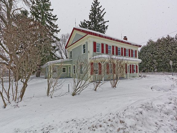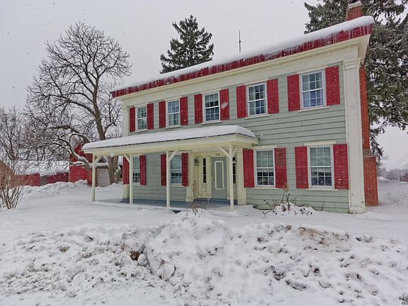 Charming 1780 Center Hall Colonial. Lovingly restored with many original features and details. Once served the area as a roadside inn. Country living, yet only 15 minutes to I-90 4 bed/3 baths. 2nd floor master suite. Updated electric, hardwood floors, stone fireplace, Many outbuildings make it ideal for a mini farm. Mature apple and pear trees, blackberry and raspberry bushes, and even wild grapes are growing on your 3.3 acres.. Equipped with whole house Generac generator never be without power again! Welcome home!