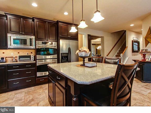 What a great opportunity to own a beautiful Evansburg Model at the Preserve at Skippack Creek! This Guidi built home in Souderton School District is over 8,000 square feet and has been meticulously maintained and beautifully decorated. The community backs up to 25 acres of open space and has golf course views. As you enter the first floor of the home you will see a grand foyer which leads to the homes living room retreat, the dining room with elegant tray ceilings and an office which as two entry ways and full bathroom that can offer the option of having a seventh bedroom. Turn the corner and you will see the large family room with floor-to-ceiling stone wood burning fireplace that enters into the grand gourmet kitchen with large center island, custom cabinetry, wet bar, double ovens and stainless steel appliances. The kitchen also features an eat-in breakfast room that leads out to the private rear yard with two decks, stone patio and fire pit! The second-floor features five large bedrooms each with their own bathroom including a large master suite with double entry doors, two walk-in closets, a sitting room and large master bath with a 5' soaking tub, his and her vanity and large shower. The third floor has been finished into a sixth bedroom and features private sitting room and large bathroom. The basement has been finished into an additional 2,000 square feet of living space and offers 9 ft. ceilings and plenty of storage. This home is ready for you to entertain all your family and friends with plenty of room to play.