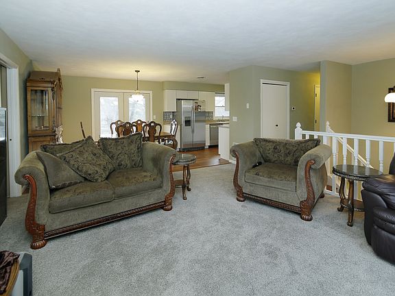 Features galore in this newly updated, 5 bedroom, beautiful home on 1 acre in Burlington Township. Step in the front entrance and admire the stunning light fixture and new wood railings. New wood floors in the dining room and totally renovated kitchen add a touch of class. The kitchen is complete with oodles of new cupboards and stainless steel appliances. In the master bath, dual sinks, double vanity, and ceramic tile floors make this showroom worthy. Bedrooms are newly carpeted -- the upper level bedroom is big enough for a dormitory! Finished lower level has family room with fireplace, 2 bedrooms, bath and laundry room. Storage galore, new furnace, replacement windows, attached 2 car garage, and extra storage shed make this home a great value. All that needs to be added is deck