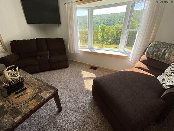 Move in ready one floor living surrounded by privacy and wonderful views of the Allegheny Highlands. New flooring, new carpeting, new kitchen, new bathroom, new plumbing, new interior painting, new lighting and so much more. Enjoy the comforts of central air in an energy efficient home on 2.49 +/- acres with an oversized garage and covered back porch.