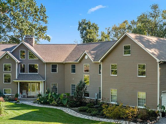 This beautiful home sits on just over six acres of mixed field, yard and wooded space. Walking trails, fenced paddock, circle driveway, burn pit, 40X80 run in shed, HORSE friendly, amazing landscaping, SCENIC FARM VIEWS, NEW ROOF, custom stone work and much more come with this small piece of paradise. Not one inch of useless space in this magnificently laid out custom floor plan. The main level is an entertainer's dream come true featuring a two story foyer entry with custom tile work. Two story great room with floor to ceiling windows and a custom masonry two story wood burning fireplace. Completely updated kitchen with granite, stainless appliances, large breakfast bar, custom cabinets and designer slate floor. Large formal dining room. Drop zone just off the entry from a more than three car garage. A massive recreation/game room with wet bar and one and a half full baths. The rec room and great room each have large sliding glass doors leading to a deck that runs the length of the house and overlooks the backyard and pasture. Multiple stairways get you to the upper or lower level. The upper level has a large cat walk with sitting area that overlooks the great room and kitchen below. The primary suite features two walk in closets, large custom bathroom with jetted tub, a walk in glass surround shower and granite countertops. A balcony off the primary serves breathtaking views for perfect relaxation. Bedroom #2 has its own sitting room, walk in closet and full bathroom just outside the door. Bedrooms #3 and #4 are large and show well. Bedroom #5 is large and currently being used as a classroom/playroom. A full office and a fourth full bathroom complete the upper level. The lower level has a wonderfully finished family room at walk out level. Walk out on the custom paver patio and enjoy the scenic views. 3000 additional unfinished square feet with two rough in bathrooms await your imagination. Put in a theatre room or a bowling alley if you like. The space is there. The home overall is completely custom. Household surround sound for both indoor and outdoor enjoyment. Custom lighting, flooring, landscaping, you name it it is here. Walk in and floored attic. Ample storage. Minutes from Challedon Golf Course, restaurants and commuter routes. Check out the virtual tour!