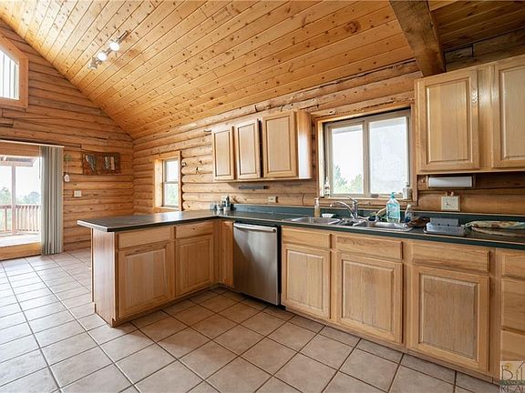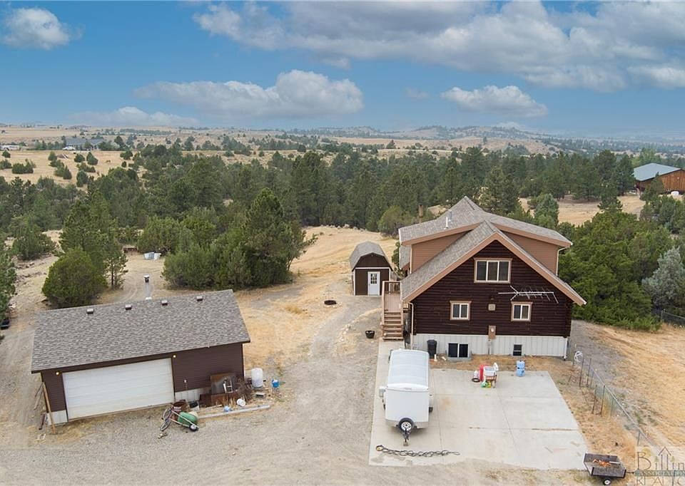 Rustic 4 bedroom, 3 bath log home on 11.591 acres in the south hills outside of Billings. Amazing views of Billings and the Beartooth mountains on clear days. Owners suite offers a walk-in closet and bath separate from the other bedrooms. Two secondary bedrooms and bath on the main level. Kitchen has newer stainless appliances and peninsula for quick meals. Enjoy the views from your living room or dining room, or go directly to the west facing deck for amazing sunset views. Basement offers an additional egress bedroom, bonus room and a large family room with wet bar and walkout to the yard. Multiple outbuildings include a small fully insulated wood shop/garden shed, detached 2 car garage and separate single stall garage. The 11.591 acres include turkey and deer as well as rolling hills and a deep coulee amongst the juniper and sage.