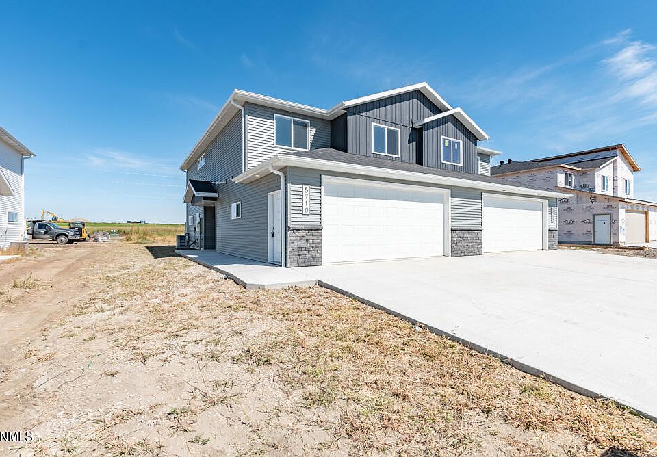 Welcome to SILVER RANCH, your perfect home in Northeast Bismarck! We are thrilled to present this exquisite two-story twin home that boasts 3 bedrooms and 2 1/2 bathrooms. Immerse yourself in 2,017 square feet of open concept living space, meticulously crafted with exceptional quality. Step inside and be captivated by the elegant features that define this residence. The main level showcases a stylish tile backsplash, stunning quartz countertops, sleek stainless-steel appliances, soft close cabinetry, under cabinet lighting, and a cozy electric fireplace. It's a perfect space for entertaining or enjoying quiet evenings at home. Ascending to the upper level, you'll discover two additional bedrooms, a flex-zone area, a spacious laundry room, and the luxurious Primary suite. The Primary suite is a sanctuary of comfort, complete with a boxed ceiling, a generous walk-in closet, and a beautifully appointed bathroom. Indulge in the double sink vanity, soft close cabinetry, quartz countertops, and a spacious shower, creating an oasis of relaxation. Convenience and functionality are further enhanced by the attached two-stall garage, thoughtfully designed with insulation, a floor drain, hot & cold-water hookup, and pre-wiring for a garage heater. Taxes and specials are currently incomplete, buyer's agent to verify these details. Don't miss the opportunity to call SILVER RANCH your home. Agent/Owner*