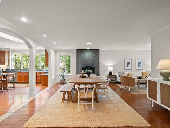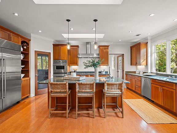 Nestled on a beautifully landscaped 0.4 acre lot, this stunning home perfectly combines tranquility with elegance. Set far back off Moraga Ave, this residence is your private retreat, surrounded by nature and designed for both relaxation and entertaining. As you step inside, you’re greeted by an open floor plan, with multiple skylights and large windows that frame views of lush trees and flowers that make you feel like you're vacationing in Tahoe. The heart of the home is the chef's kitchen, featuring high-end appliances and plenty of space. Gather around one of the two cozy fireplaces on cool evenings, or enjoy the seamless flow of the open floor plan that is ideal for both everyday living and hosting guests. The outdoor space is a park-like paradise with fruit trees. The expansive backyard is designed for entertaining with multiple gathering points, including a lush grassy lawn perfect for picnics, and designated play areas for children. Meander along the charming walking paths that wind through the landscaped grounds, offering a peaceful escape right in your own backyard. Additional features include an oversized garage, a wine cellar and ample parking on the property. This home is truly a sanctuary. With its serene setting, thoughtful design, and convenient location.