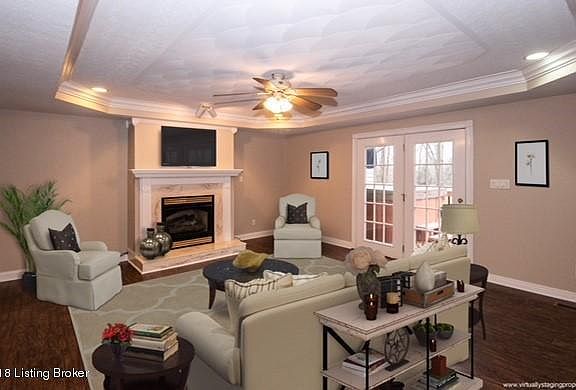 Oldham County Mini Horse Farm with 18 stall barn sitting on 6 plus acres....This home has a split ranch floor plan with over 3700 square feet finished including walk out basement. The entire home was just repainted and is ''move in ready''. The open floor plan offers one level living with a large master suite, dining room and laundry room on the first floor. The lower level has a large family room area, bedroom with large window, full bath and bonus room that could be an office, craft room or exercise room. A large deck is located just off the back of the home with access from the great room and master bedroom. The 2-car attached garage has a wood stove and features a large turnaround area for easy access. Also there is an above ground pool, fire pit area, swing, shed and hot tub.